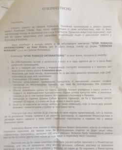 Suština pisma, do koga je došlao portal Bujanovačke je u tome da je za firmu bio zainteresovan renomiran kupac iz branše, Kompanija Star Tobacco International iz Hong Konga, ali je DIB ipak prodat drugom kupcu, Sremskoj mlekari iz Sremske Mitrovice, koja je i dalje aktuelni vlasnik DIB.