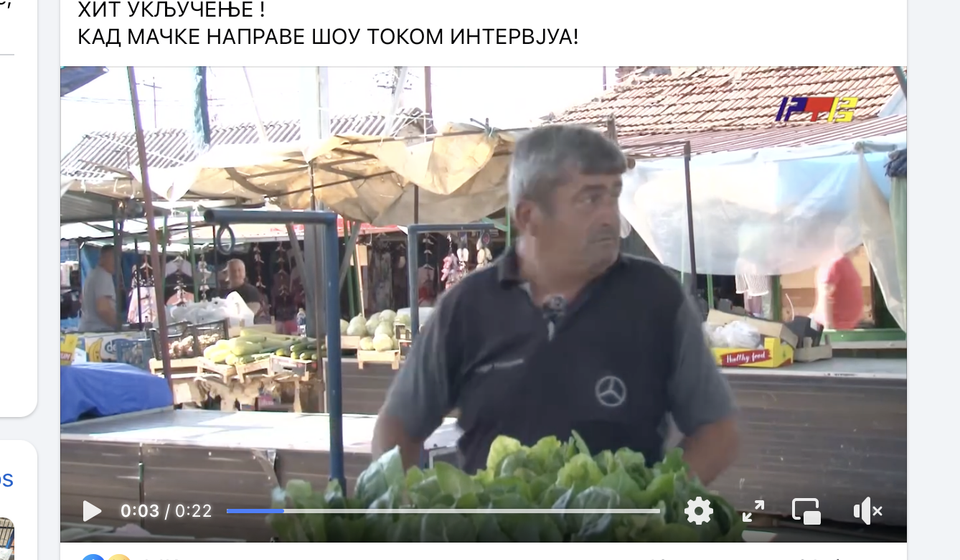 A direktore na Er-te-ve doo Zorta od Gumerište duhovit čovek, pa napisaja posle na profil tog doo-a na Fesjbuk, ka’e: “Hit uključenje! Kad mačke napreve šou tokom intervjua!” Lele što je zanimljivo, a? I smešno. Ali, možda.