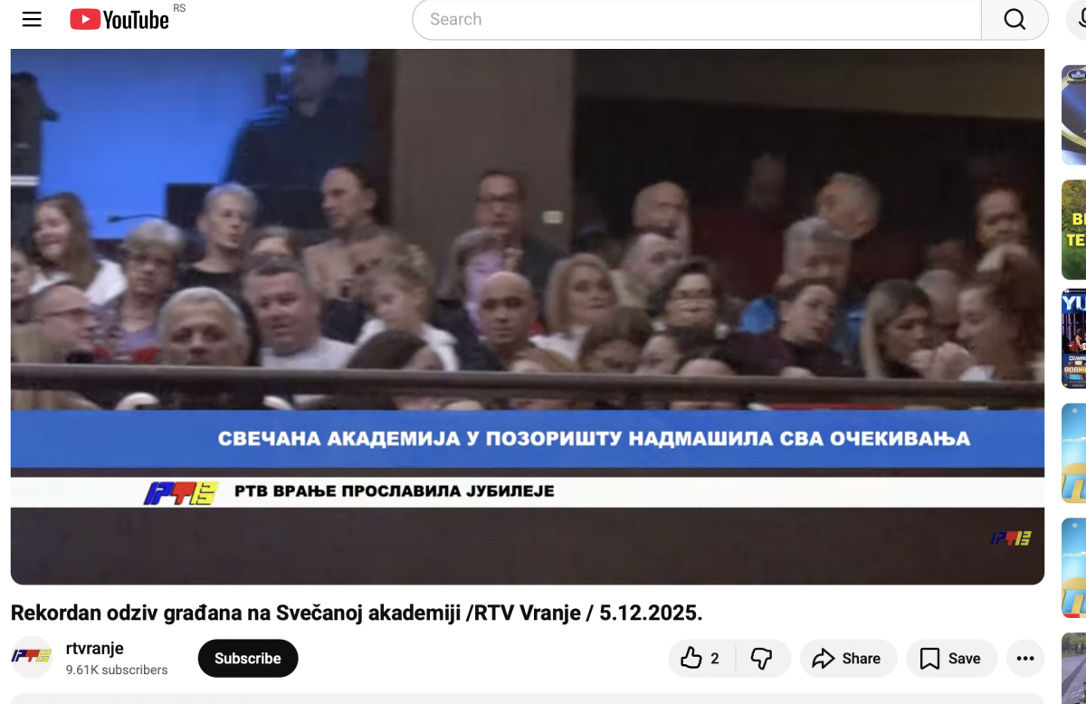 Zorto, ali ne da si zauzimaja poze na promociju monografijetine. Liiiii…. Kako intelektualac si be pravi, mlogo umno izgle’aš, pamet, mudros' i znanje izbiva iz tebe, muka te naterala kako tvoj portal. Pa sve si nešto seriozan, pa gledaš u plafon od kamernu salu u pozorište, pa si se zamislija mlogo, sigurno planiraš što ćeš i kako ćeš za 90 godine DOO-a, da l’ pa na Pržar da slavite (zdravje neka je) ili u Simpov radnički restoran? Dilema golema kako jubilej... B’š si se umudrija, pa sve gledaš preko ljudi, navika je čudo, verovatno si još u mlados’ mlogo gledaja preko brda.