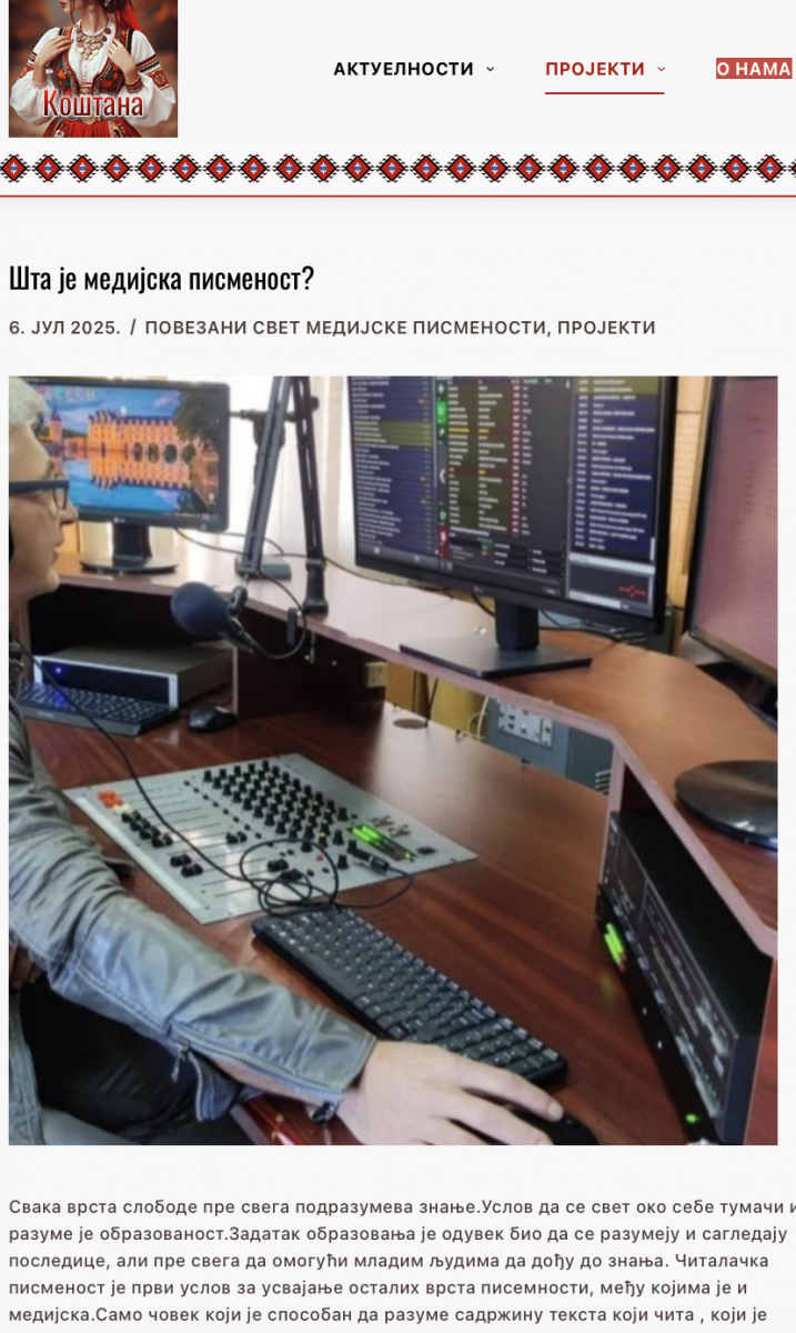 Još ovo da kažem, na kraju svakog od sedam članaka piše: “Projekat Povezani svet medijske pismenosti realizuje Portal Koštana. Istoimeni projekat sufinansira Grad Vranje".