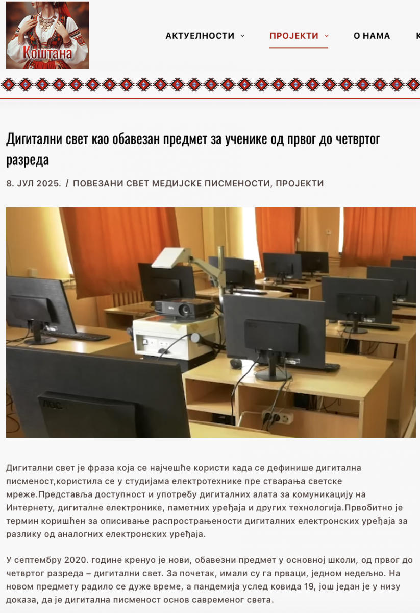 Drugi tekst objavljen je samo dva dana kasnije (8. jula) pod nazivom “Digitalni svet kao obavezan predmet za učenike od prvog do četvrtog razreda”. Zvuči dosta ozbiljno i stručno, više kao neka lekcija iz udžbenika ili rad za neki zbornik.