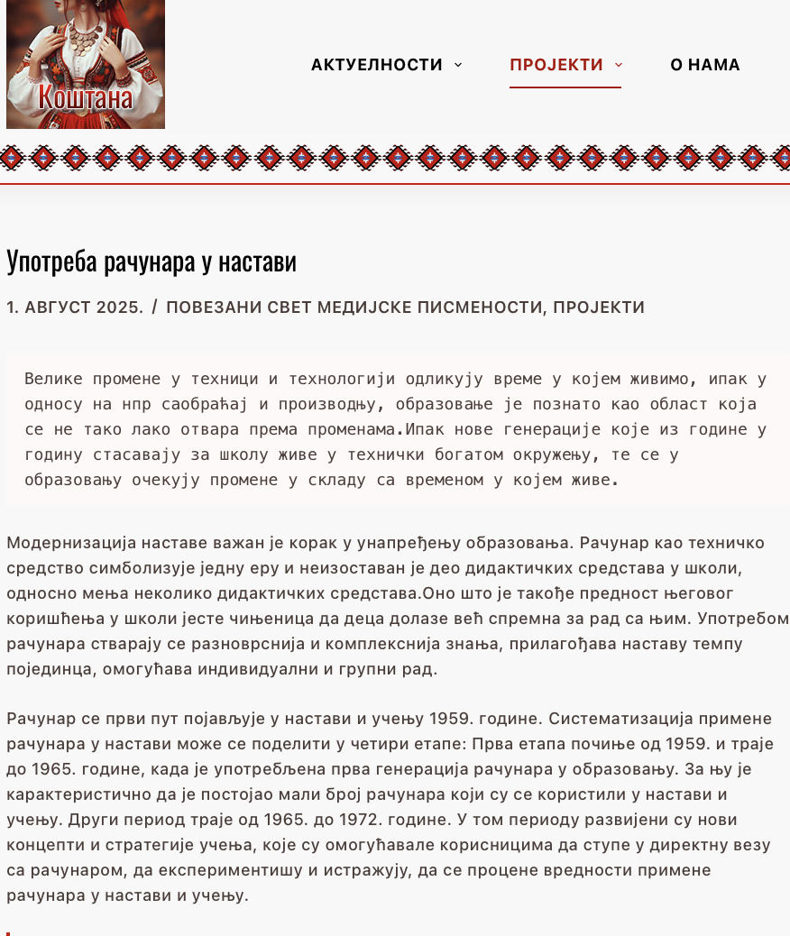 Treći, nazovimo ga, članak, zove se “Upotreba računara u nastavi”, opet kao iz neke radne sveske ili udžbenika, možda za predmet “Digitalni svet”. Objavljen je 1. avgusta i potpisala ga je, takođe, Milena Božić, urednica, novinarka, učiteljica itd.