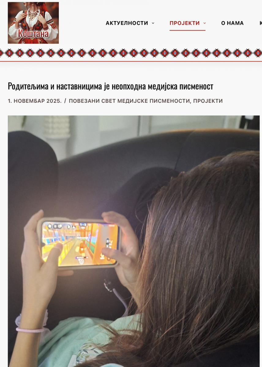 I na kraju poslednji, ali ne manje značajan tekst pod naslovom “Roditeljima i nastavnicima je neophodna medijska pismenost”.