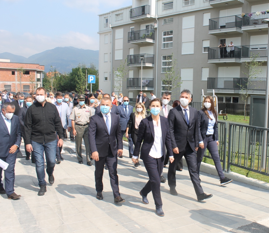 Predsednica Vlade Republike Srbije Ana Brnabić obišla je u utoraku Vranju izgrađene stanove i gradilište novih stambenih zgrada za pripadnike snaga bezbednosti.