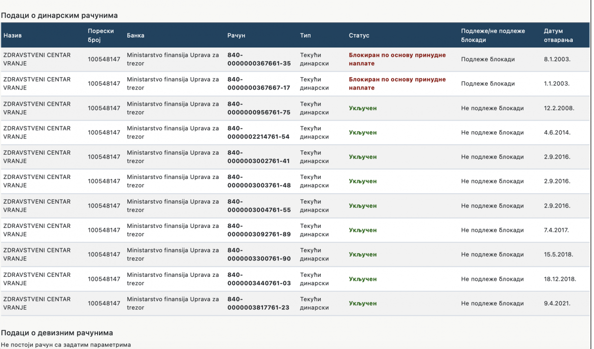 Ima i devet računa koji ne podležu blokadi.