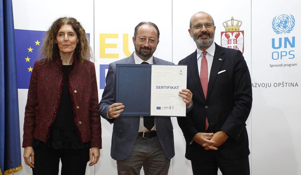 U ime lokalne samouprave sertifikat je iz ruku Sema Fabricija, šefa Delegacije EU u Srbiji, primio Predrag Branković, šef Službe za informacione tehnologije i komunikacije Gradske uprave Vranja.