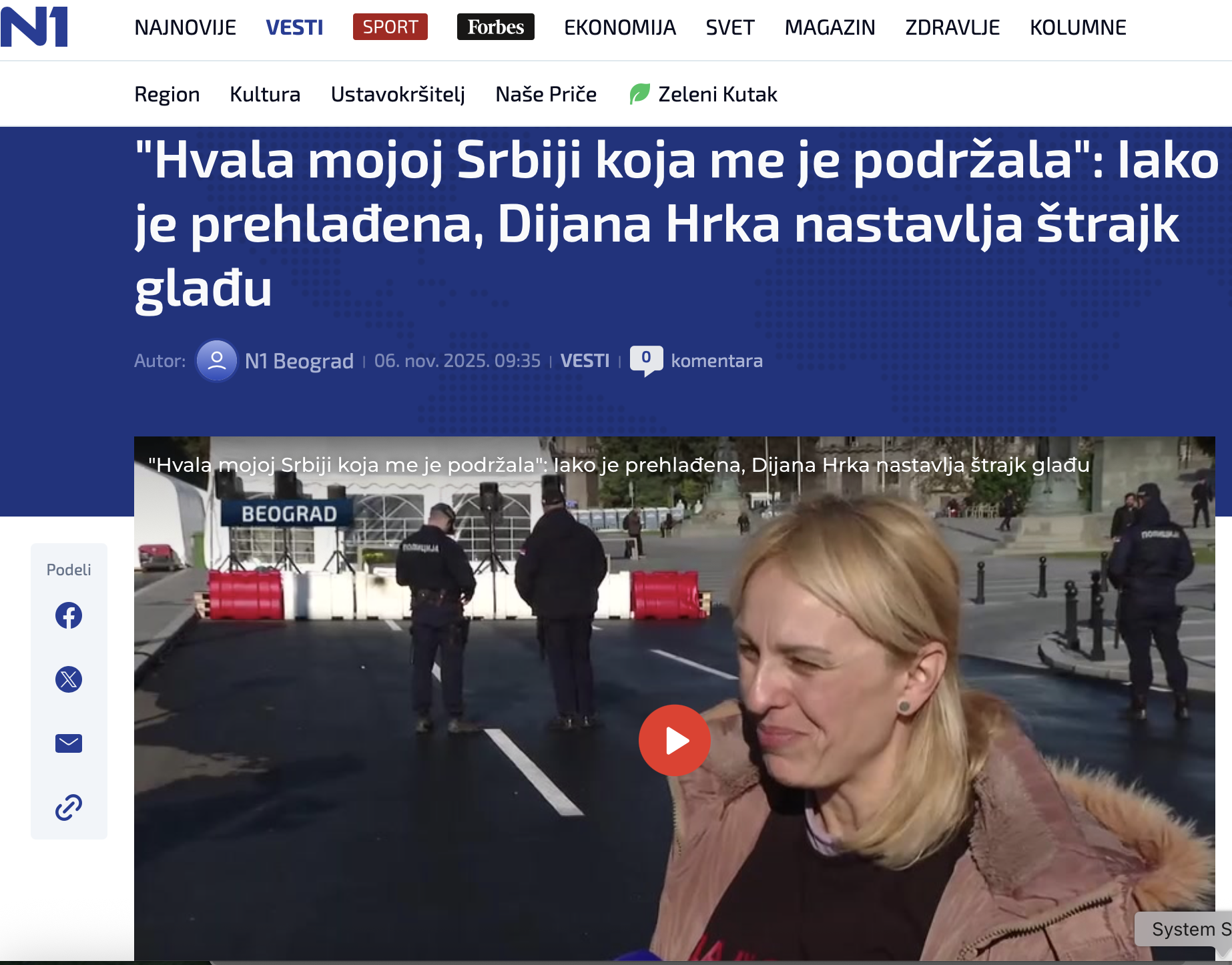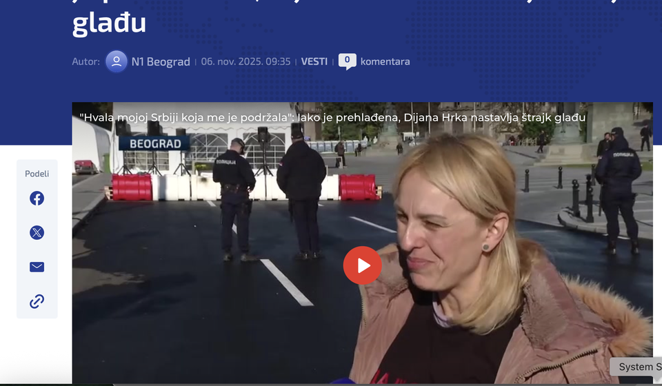 Vranja/Beograd - Dijana Hrka, majka Stefana Hrke koji je poginuo u padu nadstrešnice, peti dan štrajkuje glađu.