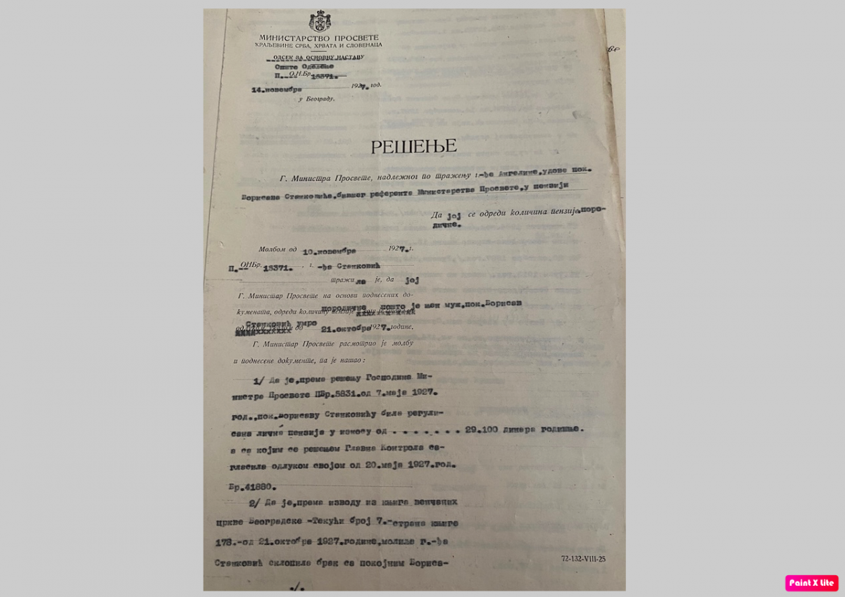 Kao penzioner 6. maja 1927. godine-pet meseci pre smrti- Bora je dobio uverenje od Ministarstva prosvete Kraljevine SHS, zavedeno pod brojem 5831 u kome se navodi:
