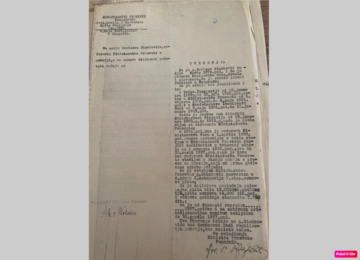 „Da je g. Borisav Stanković rođen marta 1875. god. i da je podanik Kraljevine SHS…“