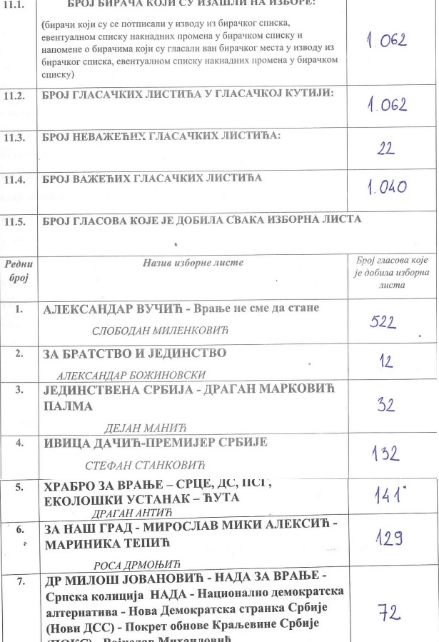 Vranje News objavljuje zvanične zapisnike sa svih birališta.
