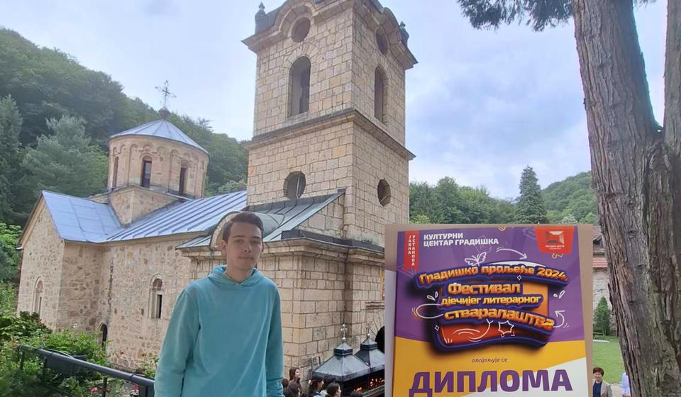 Danilo Stamenković, učenik prve godine Gimnazije Bora Stanković u Vranju, osvojio je drugo mesto na literarnom konkursu Gradiško proleće 2024.