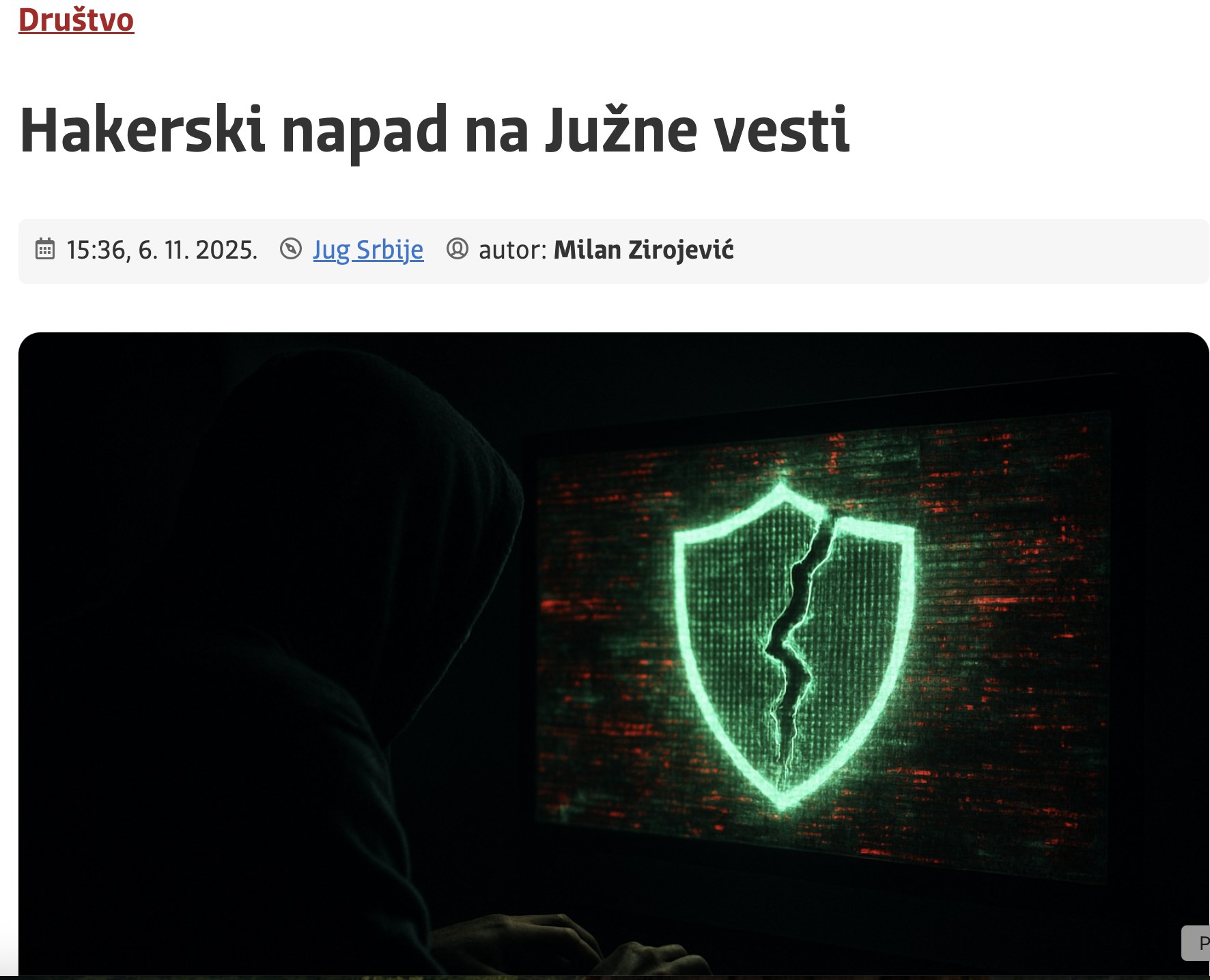 „Alert: Government-back attacks“ – stizala su upozorenja, u sredu, administratorima Južnih vesti, i to na nekoliko minuta.