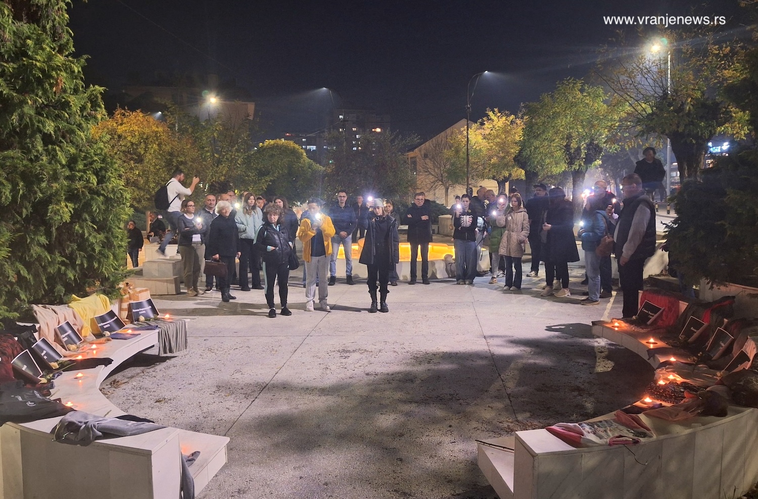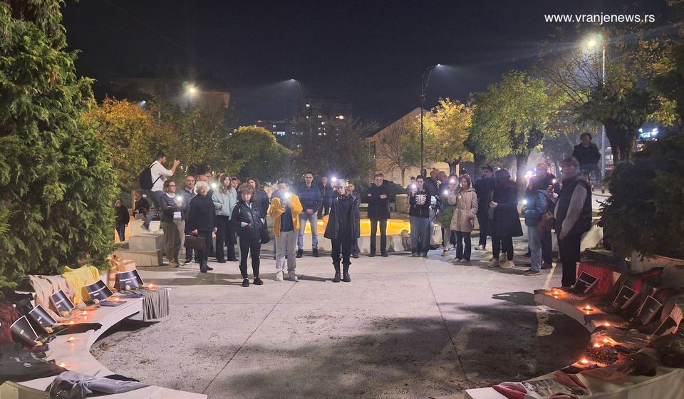 Malobrojni, ali hrabri građani Vranja okupili su se u subotu uveče kod Spomenika Čika Mita, u administrativnom centru Vranja, gde su još jednom odali poštu žrtvama pada nadstrešnice na železničkoj stanici u Novom Sadu pre tačno godinu dana.