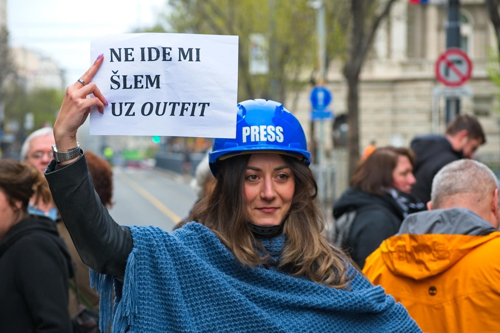 "Nažalost, među koleginicama i kolegama koji izveštavaju u interesu javnosti, osećaj ugroženosti se normalizuje i to me plaši. Ne želim da prihvatim činjenicu da je uobičajeno nošenje šlema dok se izveštava o stvarima koje narod mora da vidi i zna, jer vlastima to ne odgovara. To nije normalno".
