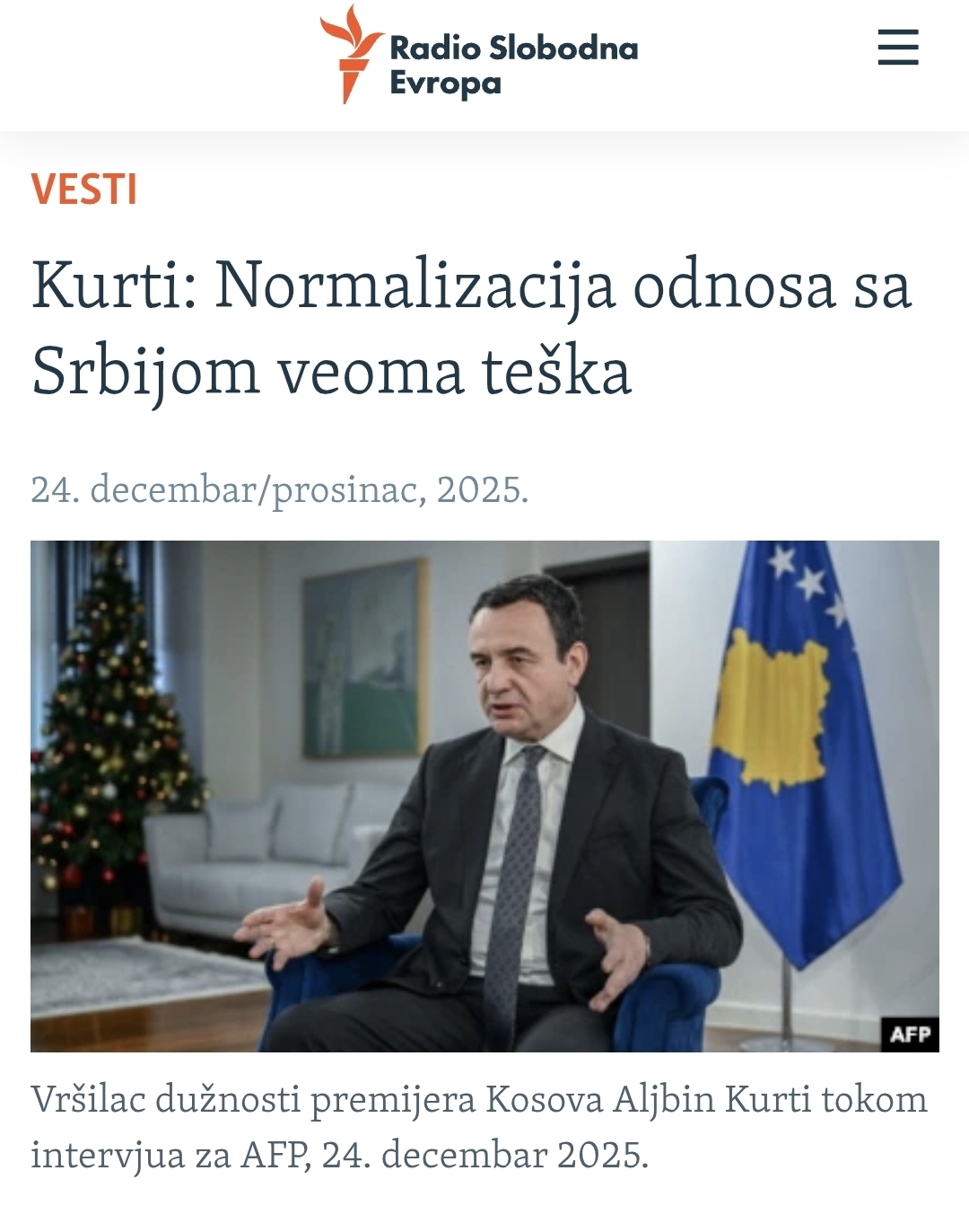 "Moramo normalizovati odnose sa Srbijom", rekao je Kurti. "Ali normalizacija odnosa s susedom koji ima autoritarni režim i koji vas ne priznaje, a takođe ne prihvata zločine počinjene tokom rata, veoma je teška".