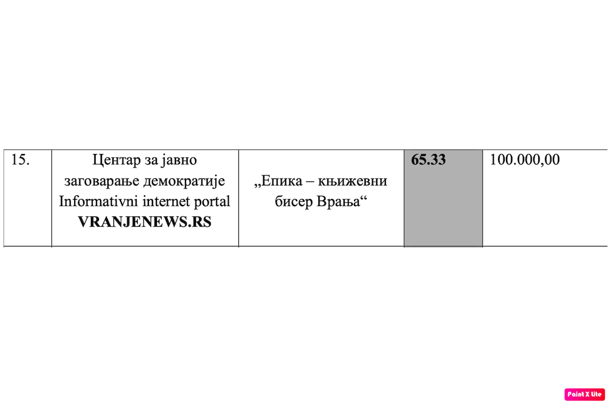 Da ne pričam da je svaki naš medijski projekat, koji je ove godine odbijen na konkursima, a posebno ovaj u Vranju kome ste odobrili minimalca, sigurno bolji od onih kojima ste poslednjih par godina dali po 100.000 evra za jedan projekat.