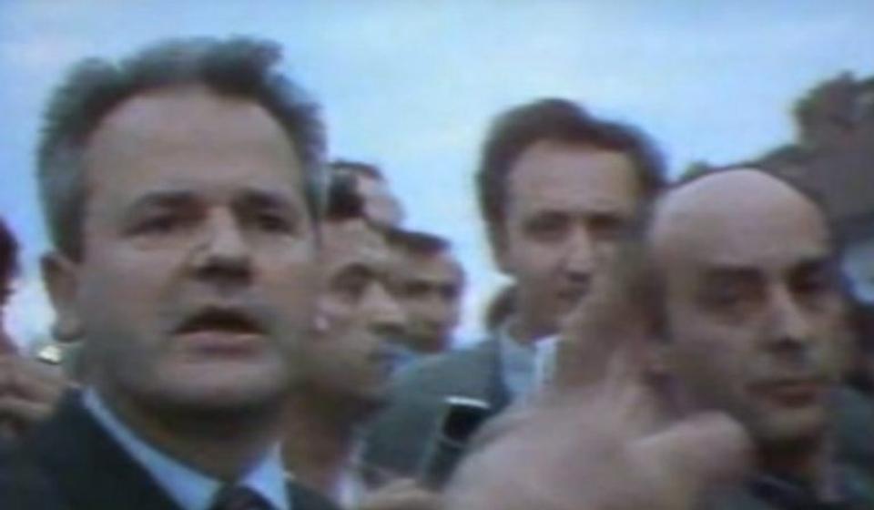 Kada je čuo galamu ispred zgrade, Milošević je prekinuo taj razgovor i izašao pred Srbe u nameri da ih umiri.