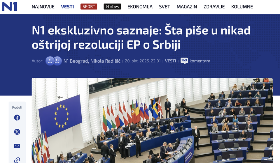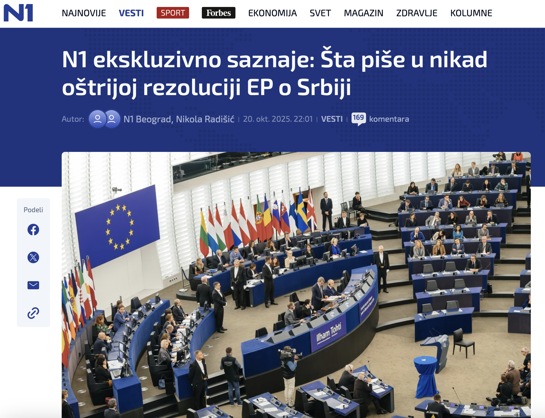 Dopisnik N1 istakao je da je rezolucija spremna, i da je, uprkos pokušajima Evropske narodne partije (EPP), čiji je partner Srpska napredna stranka (SNS), da se ublaži njen sadržaj, rezolucija je i dalje izuzetno oštra prema Srbiji.