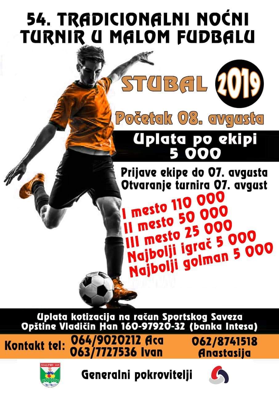 Generalni pokrovitelj turnira "Stubal 2019" je opština Vladičin Han i Sportski Savez.