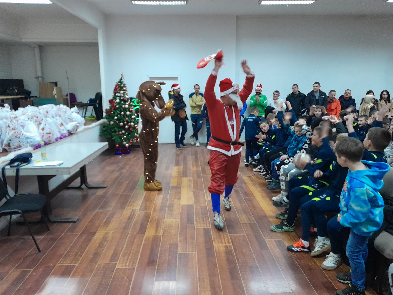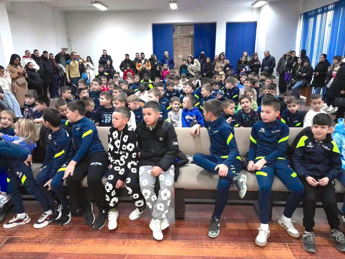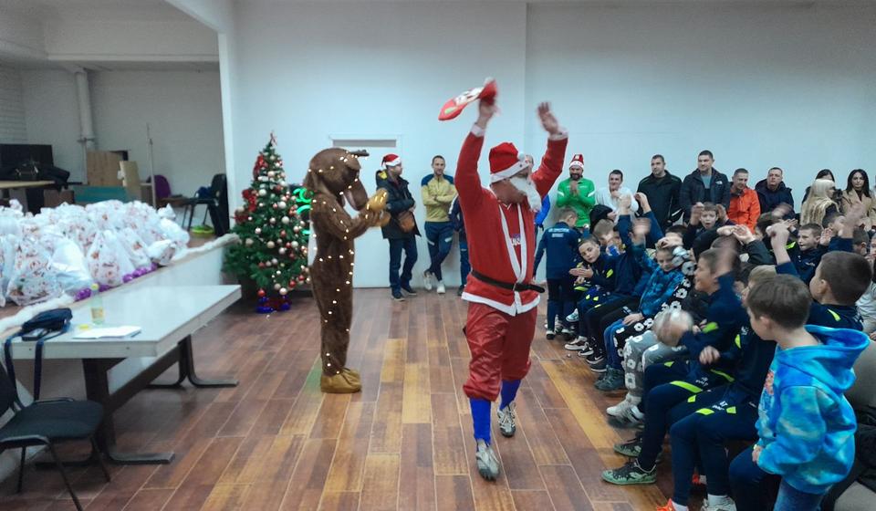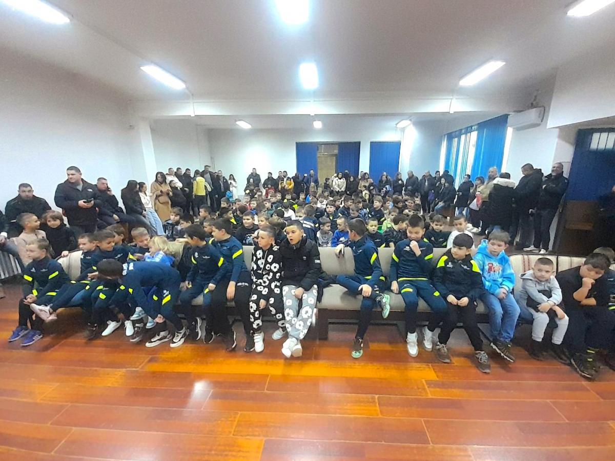 U sali OKCE u Vranju najmlađim polaznicima škole fudbala poklone je podelio Deda Mraz.