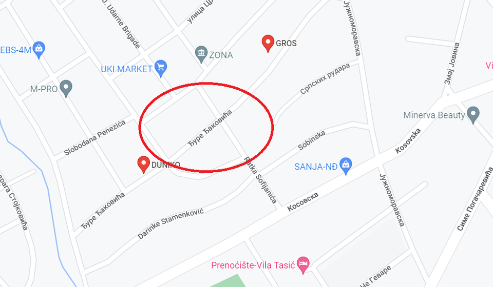 Ulica Đure Đakovića nalazi se u gradskom naselju Odžinka.
