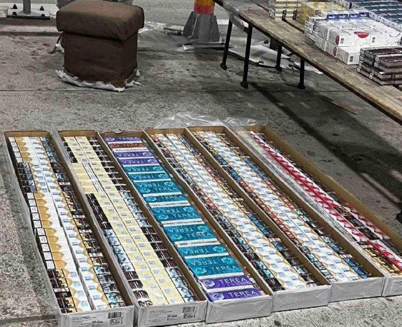"Najpre je, na ulaznoj strani graničnog prelaza Preševo, tokom detaljne kontrole kombija, u paketima laminata i u dva taburea pronađeno 1.450 paklica različitih cigareta i duvanskih patrona, čija je vrednost procenjena na preko 500.000 dinara.