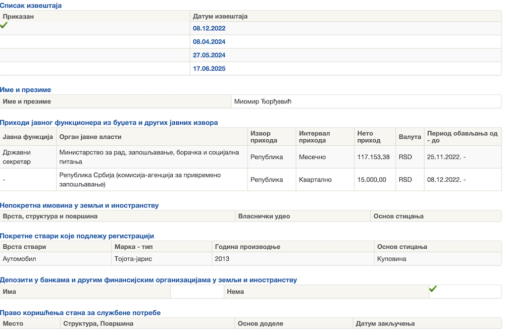 Ako se pogledaju njegove ranije prijave imovine, praktično je od decembra 2022. kao javni funkcioner prijavljivao to isto.