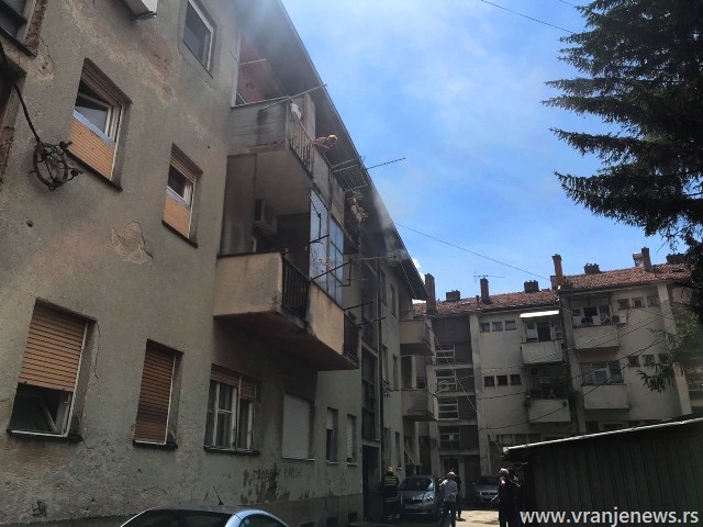 Nešto posle 14 časova vozilo Vatrogasnog bataljona u Vranju intervenisalo je u Ulici Karađorđevoj u centru Vranja gde je izbio požar na jednom od nižih spratova.