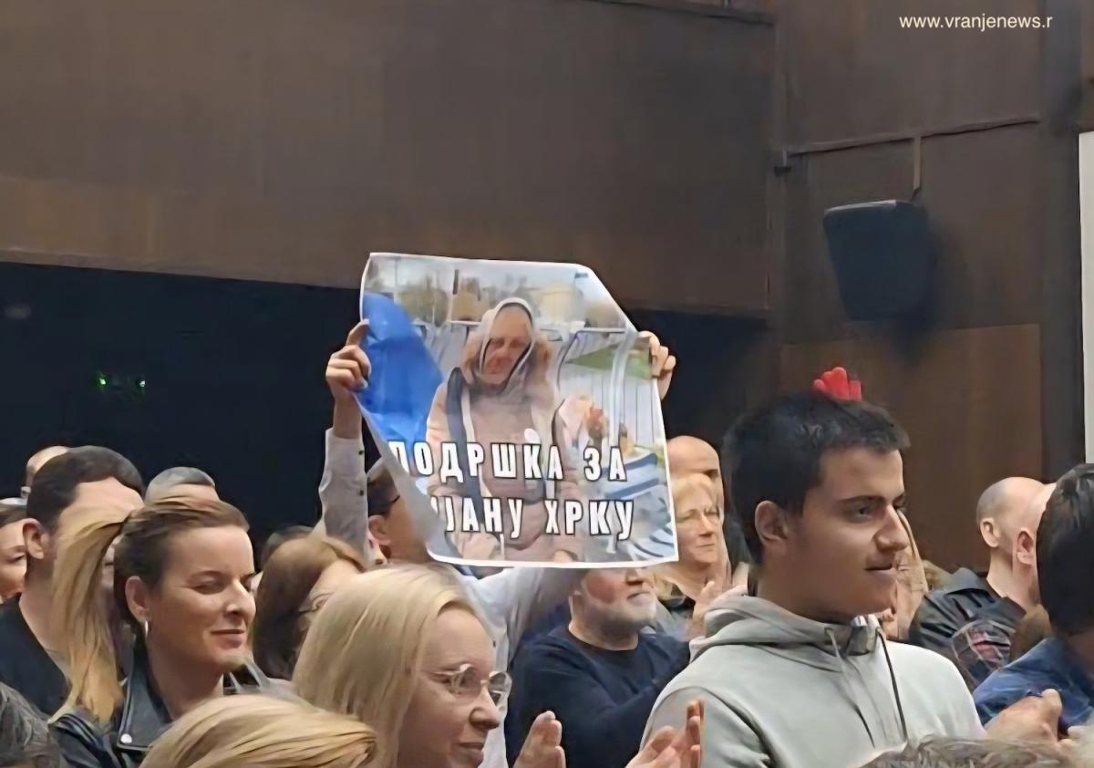 Naime, grupa gledalaca, posle završetka predstave, razvila je transparent na kome je pisalo Podrška za Dijanu Hrku, preko fotografije majke koja štrajkuje jer je njen sin Stefan Hrka izgubio život u padu nadstrešnice 1. novembra prošle godine, a da niko od odgovornih za to još uvek nije snosio nikakve konsekvence.