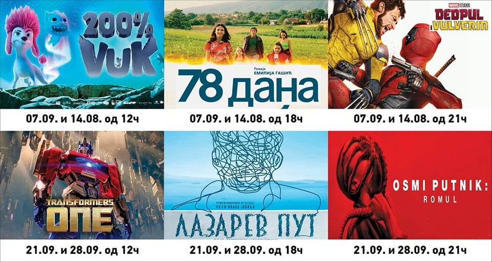 Tri filma biće na bioskopskom repertoaru u Vranju u subotu 21. septembra, a ljubitelji sedme umetnosti moći će da ih pogledaju u velikoj sali Pozorišta Bora Stanković.