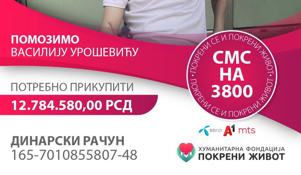 Vranje - Vasilije Urošević (2001) je 2019. godine pao sa četvrtog sprata i zadobio frakture pršljenova sa posledičnom kvadriparezom teškog stepena, kao i subarahnoidalnu hemoragiju i ostao nepokretan.