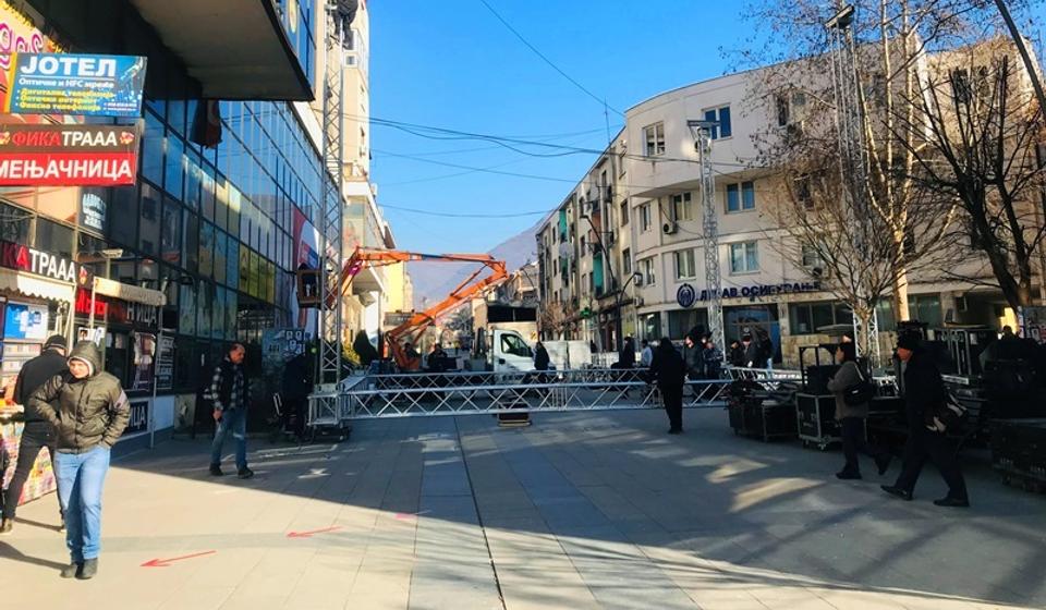 Od ranog jutra u ponedeljak na centralnom gradskom šetalištu u Vranju počelo je postavljanje montažne bine za miting koji će u 16 časova održati predsednički kandidart SNS-a Aleksandar Vučić.