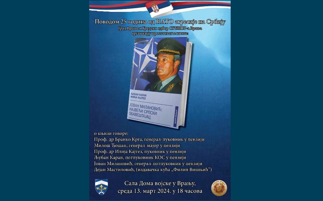 Promocija u Vranju biće održana povodom obeležavanja 25 godina od NATO agresije na Srbiju.