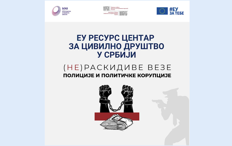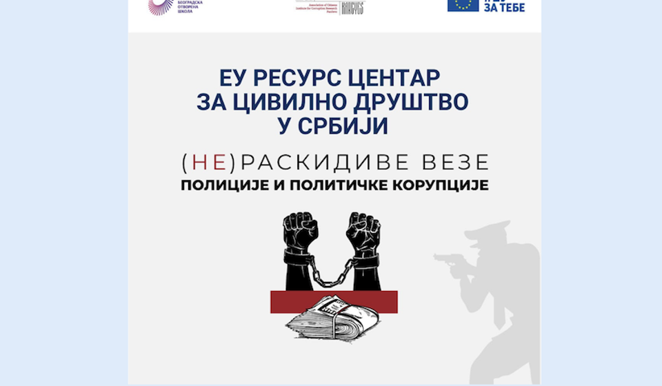 Organizacija civilnog društva Institut za istraživanje korupcije Kareja realizuje zagovaračku inicijativu (Ne)raskidive veze policije i političke korupcije, u okviru projekta EU Resurs centar za civilno društvo u Srbiji, koji Beogradska otvorena škola (BOŠ) sprovodi u partnerstvu s organizacijama civilnog društva Novosadska novinarska škola, ENECA, Užički centar za prava deteta, Nova planska praksa, Sigurne staze, Mladi poljoprivrednici Srbije i međunarodnim partnerom, fondacijom Fridrih Ebert (Friedrich Ebert Stiftung).