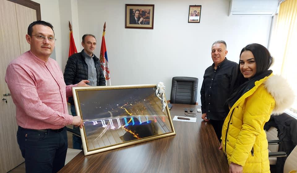 Tema razgovora bila je nastavak saradnje mlade umetnice i opštine, jer je rukovodstvo Vladičinog Hana zainteresovano da neke od javnih prostora - fasade, betonske zidove i slično - definiše izradom murala.