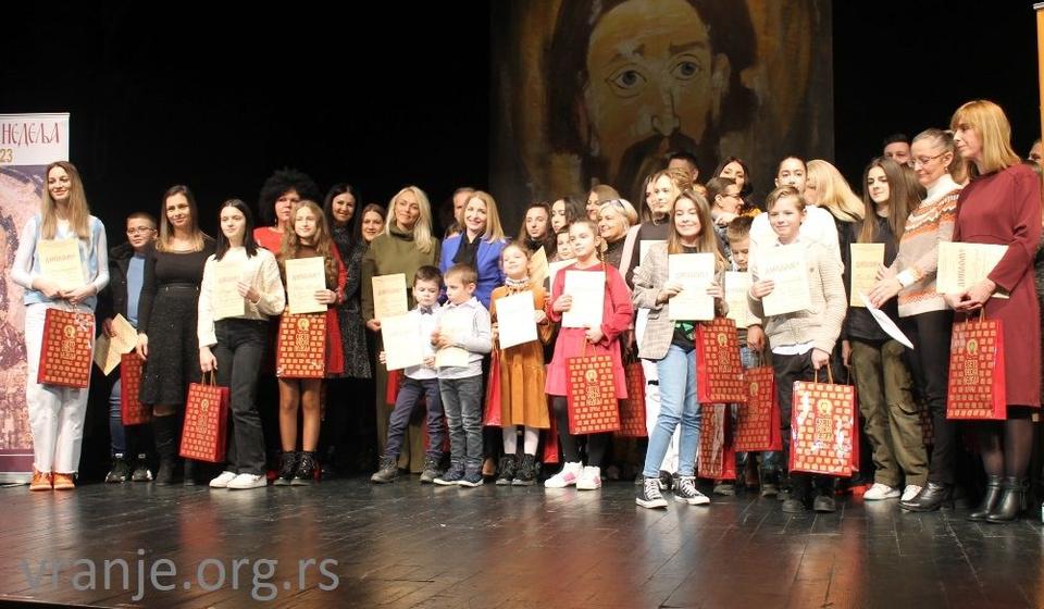 Program pod nazivom Učenici Svetom Savi u čast, u okviru koga su dodeljene nagrade najboljim recitatorima i autorima likovnih i literarnih radova, održan je u sklopu kulturno prosvetne i duhovne manifestacije Svetosavska nedelja u Pozorištu Bora Stanković u Vranju.