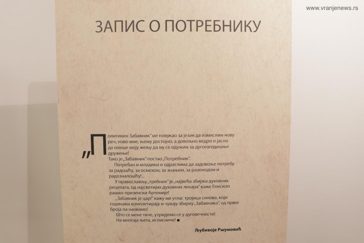 Izložba koja je pred nama ima posebnu važnost, jer osim starih brojeva zabavnika, sadrži i predmete korišćene u radu redakcije", rekao je Ilić.