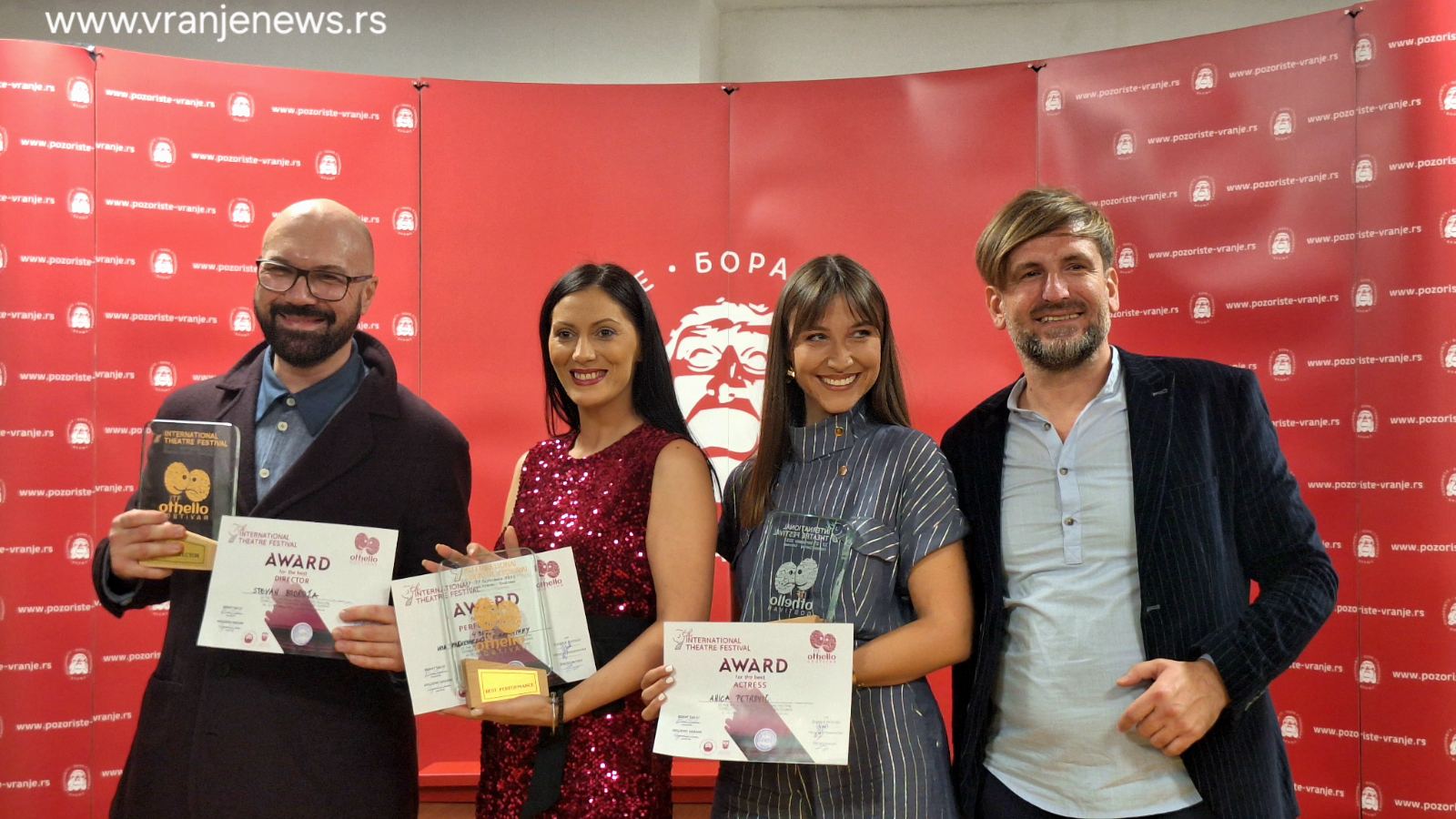 Uručenje tri od četiri festivalske nagrade sa međunarodnog festivala Othello u Gostivaru, članovima ansambla vranjskog teatra (za predstavu "4 zida ili tragikomedija o karantinu", upriličeno je tokom festivala Borini pozorišni dani u prostorijama Pozorišta Bora Stanković u Vranju.