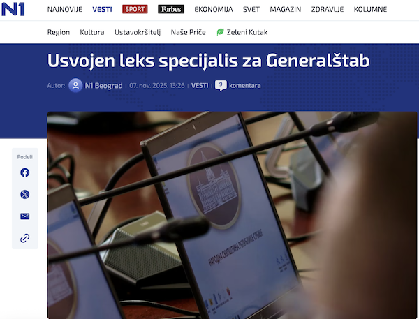 Leks specijalis za Generalštab ima 11 članova koje prenosimo u celini: