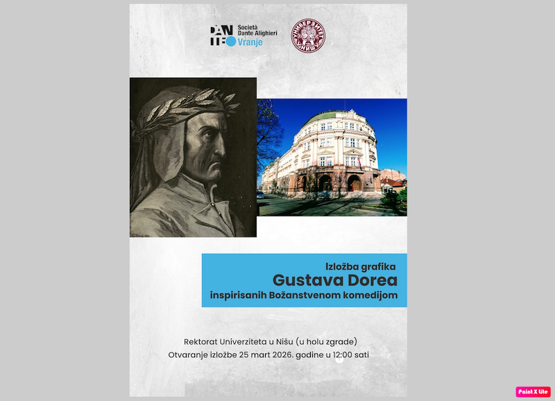 U čast potpisivanja sporazuma o saradnji, u holu zgrade Rektorata, tog dana u 13 časova, biće otvorena izložba reprodukcija grafika Gustava Dorea, inspirisanih Božanstvenom komedijom.