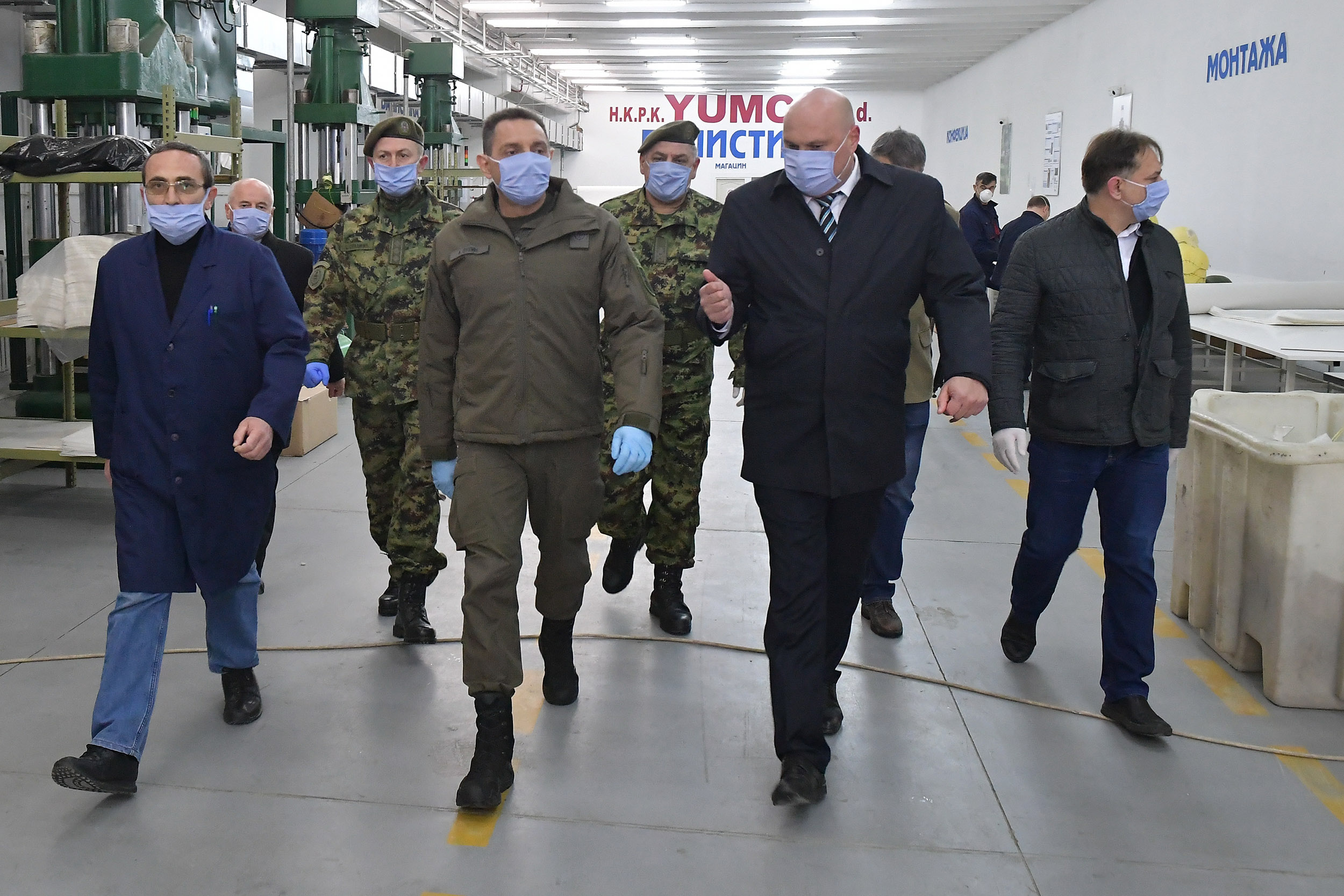 On je obišao pogone kompanije Jumko gde se, od uvođenja vanrednog stanja usled epidemije koronavirusa, izrađuje zaštitna oprema.