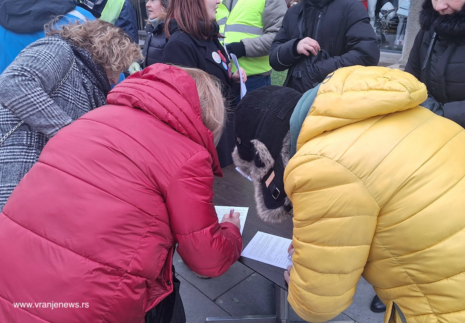 U saopštenju se dodaje da "ni zima, ni jak vetar nisu sprečili Vranjanke i Vranjance da u velikom broju izađu" na centralno gradsko šetalište i podrže inicijativu za raspisivanje vanrednih parlamentarnih izbora.
